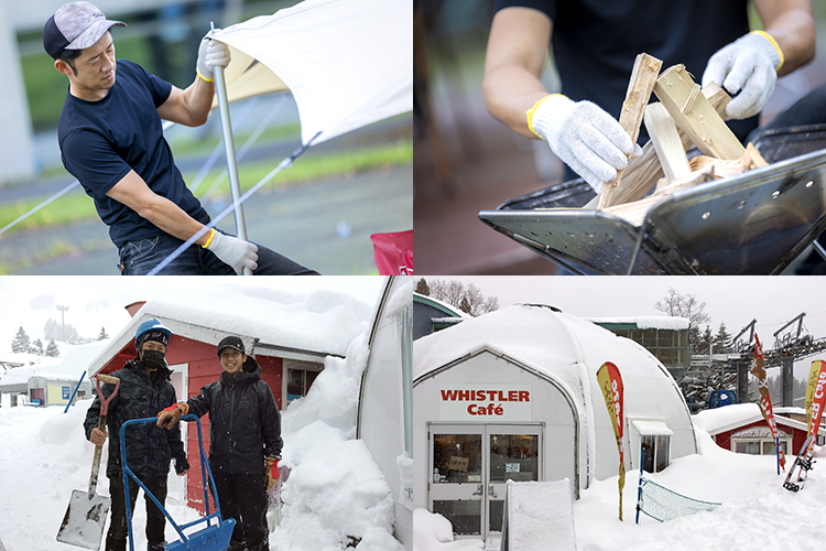 こういった通常の飲食店業務だけでなく、夏には、たき火の準備やタープの設営、冬は店舗周辺の雪かき(写真は数年前の除雪作業です!)などなど、アウトドアフィールドにあるからこその実務も、幅広くこなします。