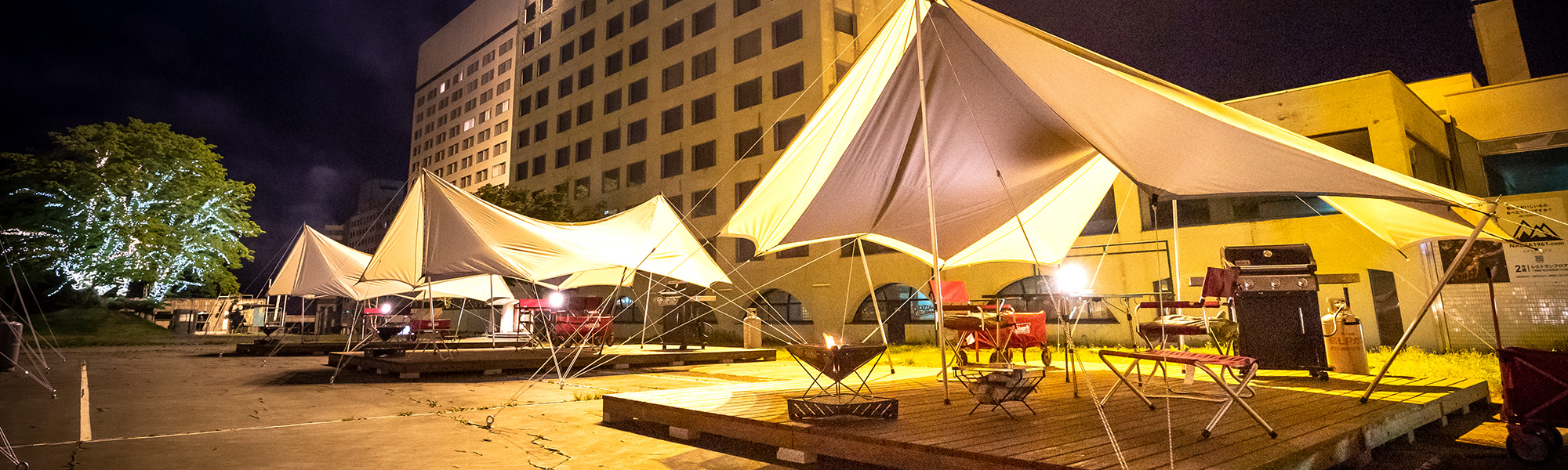 | A. | ウッドデッキには大型の2枚重ねタイプのタープが用意されています。強風を伴わない雨であれば問題なくお楽しみいただけます。 |