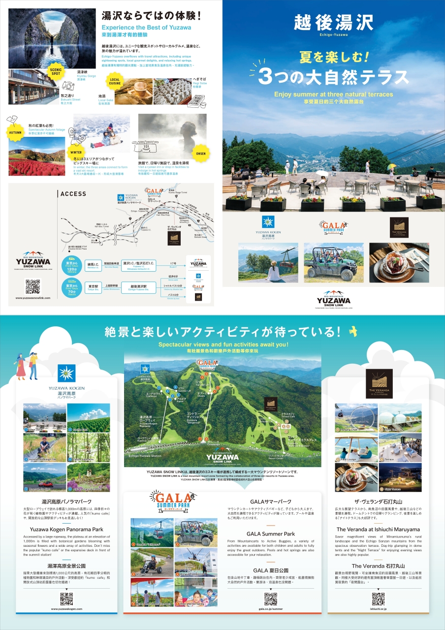 2025.08.13 PAPER TOOL 「湯沢スノーリンク」2025年グリーンシーズン パンフレット 2025年7月制作 新潟県・越後湯沢エリアで人気の3つのスキー場「湯沢高原パノラマパーク」「GALAサマーパーク」「ザ・ヴェランダ石打丸山」の2025年夏営業を紹介。 (A3 二つ折り、日本語・英語・繁体字) Tweet Share